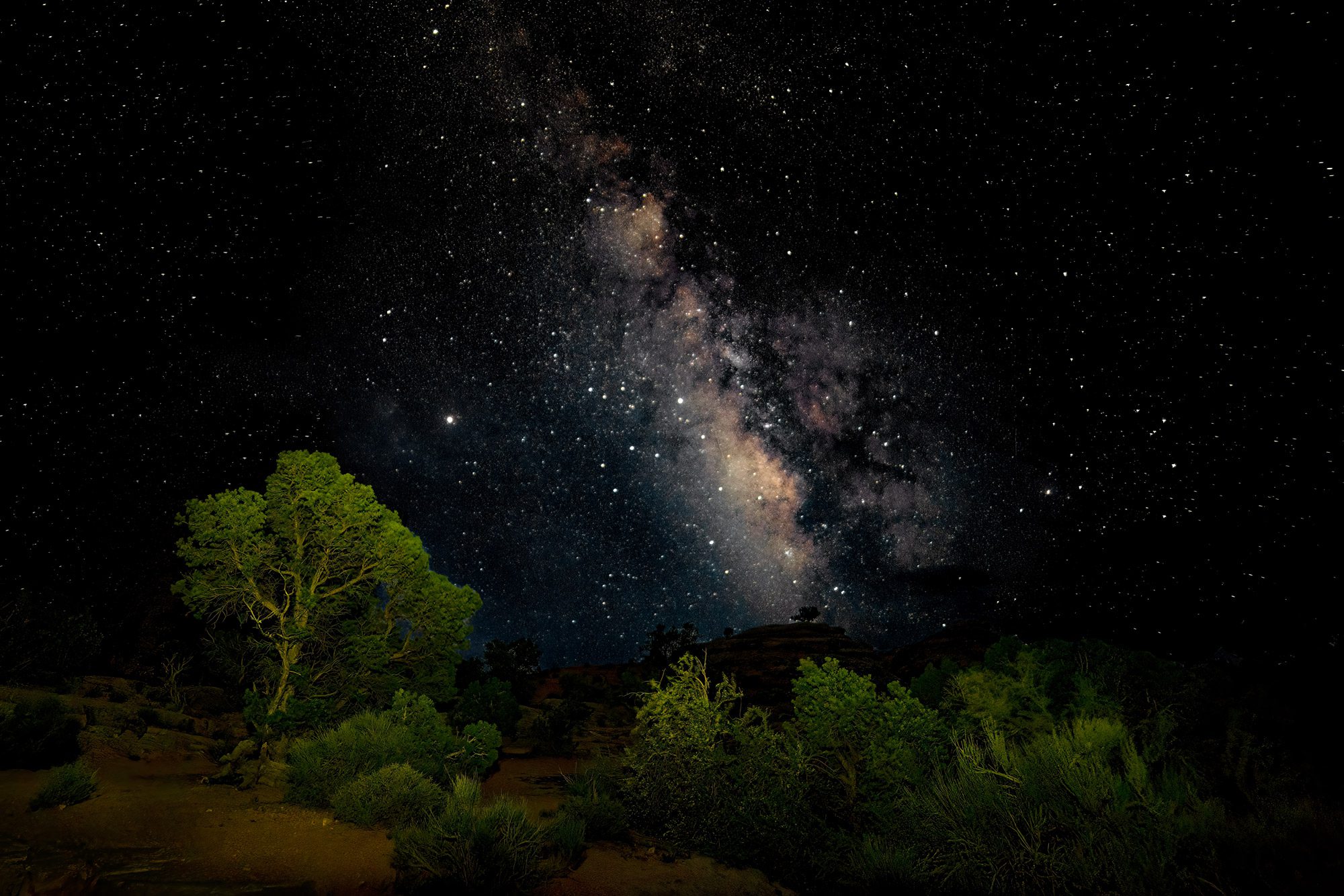 I wasn’t looking for a Milky Way shot. I was out for the sunrise. As I headed up into the rimrock, a meteor caught my eye, then a fireball, then this. I do wish I’d caught that fireball though. It was so bright and relatively slow. A slight glow from distant Page, Arizona, allowed me to keep the rock formation in the image, with the center of the galaxy in the upper right.