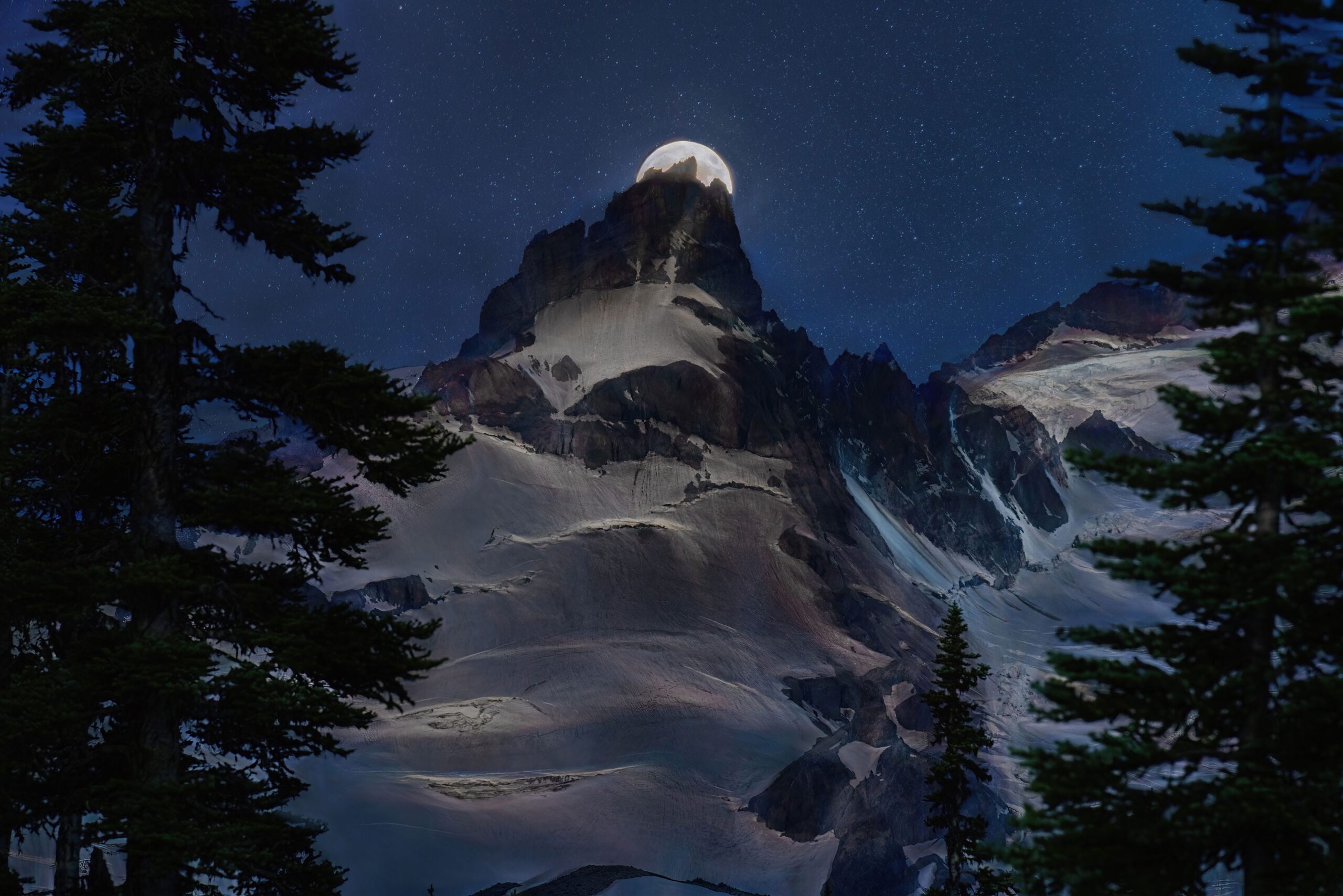 Peeking Moon with Little Tahoma Peak, Mount Rainier, 2017